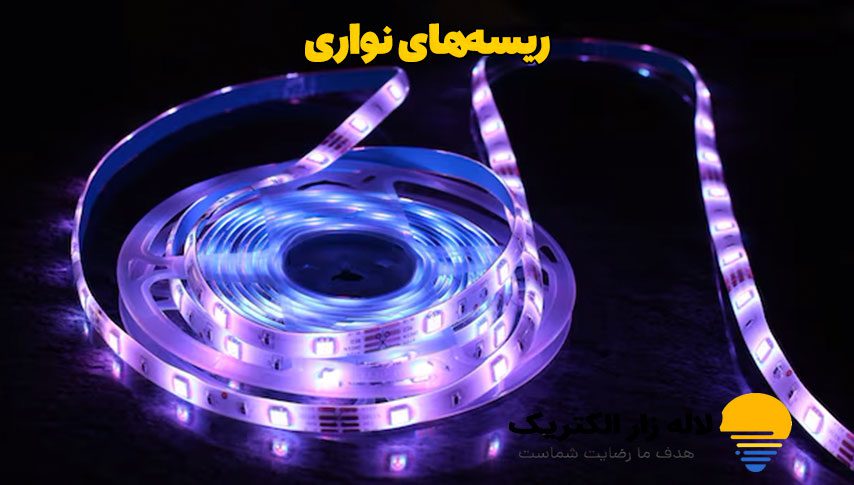 این‌ها محبوب‌ترین و رایج‌ترین نوع ریسه هستند. یک نوار باریک و انعطاف‌پذیر که چیپ‌های LED با فاصله مشخص روی آن قرار گرفته‌اند. پشت آن‌ها معمولاً چسب دوطرفه قوی (مثل 3M) وجود دارد که نصب را بسیار آسان می‌کند.