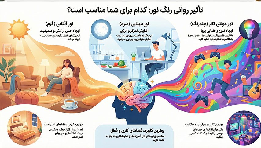 - خاموش کردن: درسته که LED کممصرفه، ولی بهتره وقتی خونه نیستی یا میخوابی، خاموششون کنی. هم عمر ریسه بیشتر میشه، هم خیالت راحتتره.