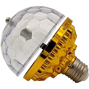 - لامپ دیسکویی 6 وات طلایی RGB به طور خودکار شروع به چرخش و تولید نورهای رنگی میکند.